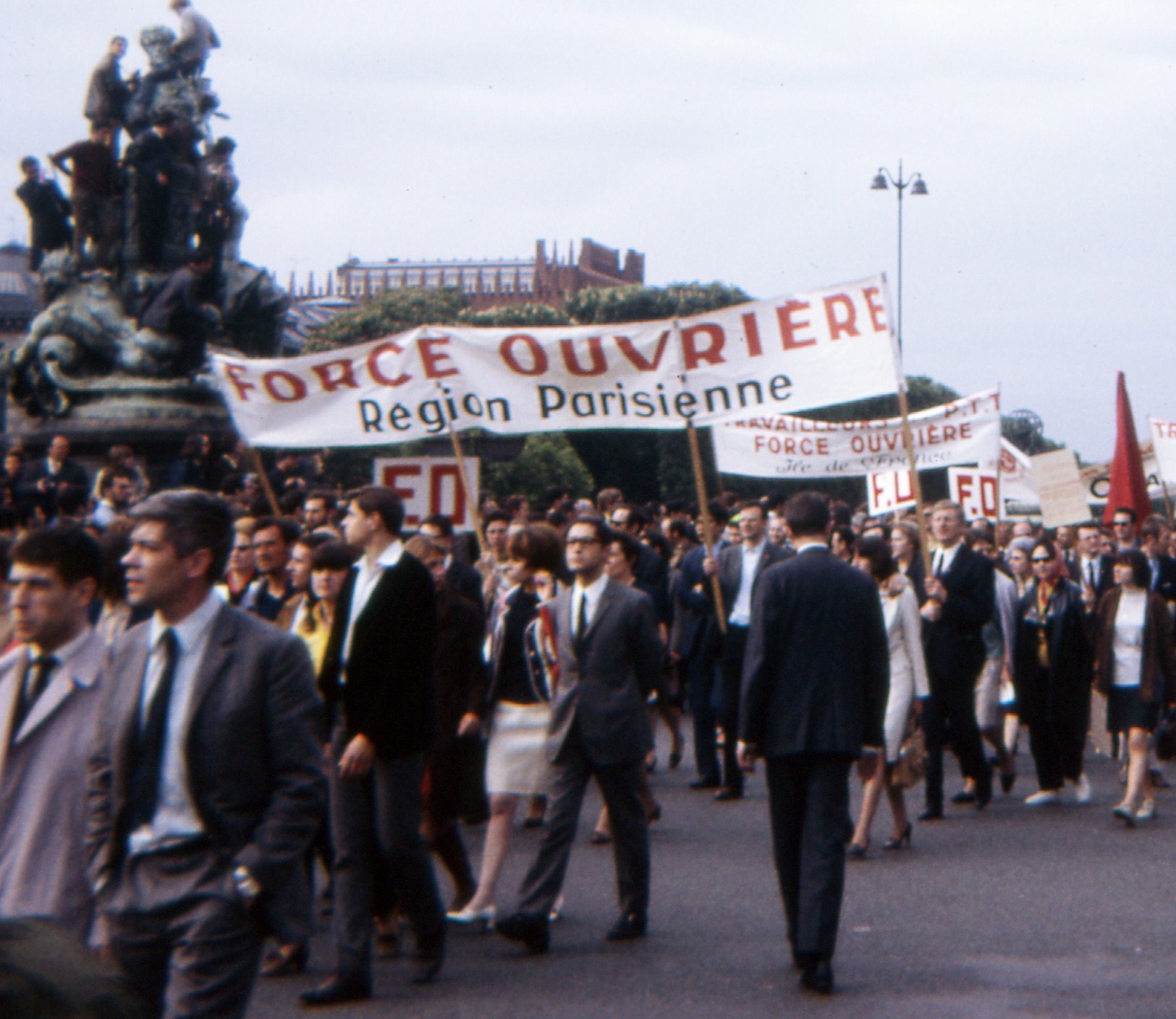 Workers and the French middle class (“bourgeoisie”) supported the student protests during a million-strong demonstration, Paris, May 1968.
