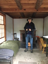 Jay showing the scale of Thoreau’s clever house, Walden Pond